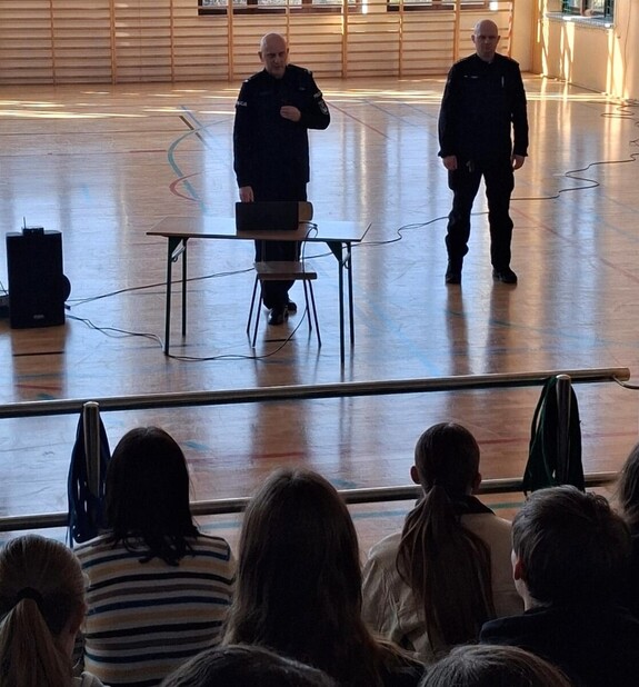 Dzielnicowi z Komisariatu Policji w Grybowie 18 marca br. odwiedzili uczniów Szkoły Podstawowej w Koniuszowej, by w ramach prelekcji profilaktycznych porozmawiać o bezpieczeństwie. Wśród poruszanych tematów była m.in. bezpieczna droga do szkoły, problematyka przemocy rówieśniczej, zagrożenia w sieci oraz zagadnienie odpowiedzialności prawnej nieletnich.