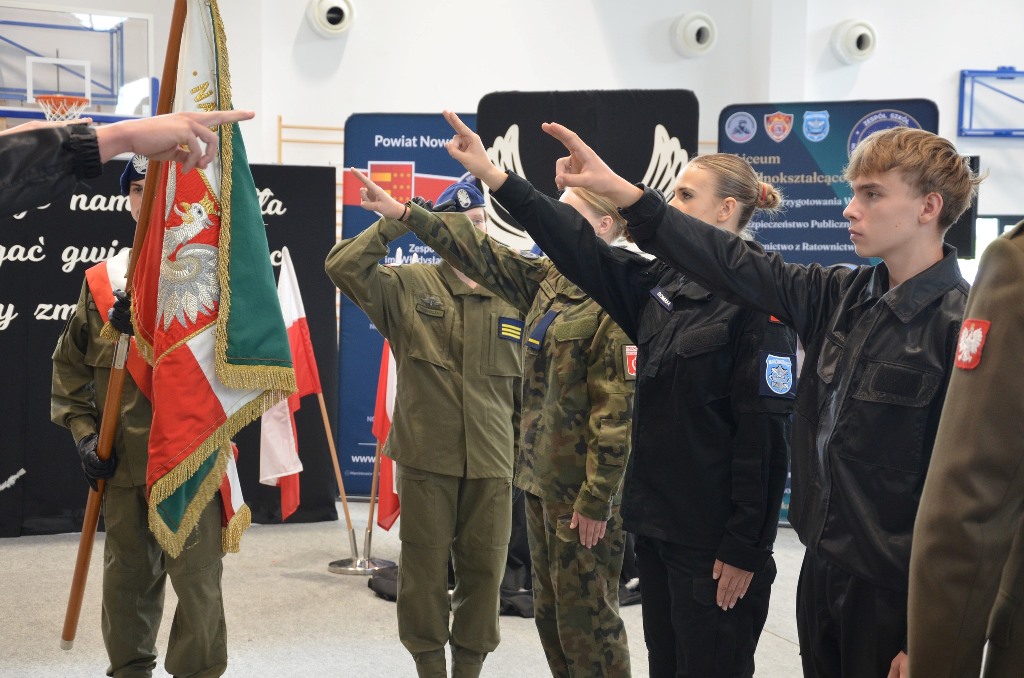 Inspektor Adam Bukański podczas uroczystości pogratulował ślubującym uczniom wyboru szkoły, życzył wielu sukcesów oraz wyraził nadzieję, że w przyszłości zwiążą swoje życie zawodowe z formacjami mundurowymi. Jednocześnie z okazji przypadającego 14 października Dnia Edukacji Narodowej szef sądeckich policjantów przekazał najserdeczniejsze życzenia dyrekcji, całemu gronu pedagogicznemu, pracownikom oraz uczniom, a także podziękował za bardzo dobrą współpracę.