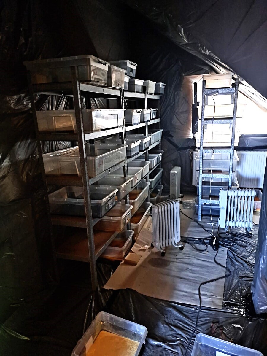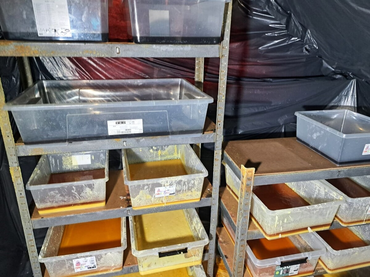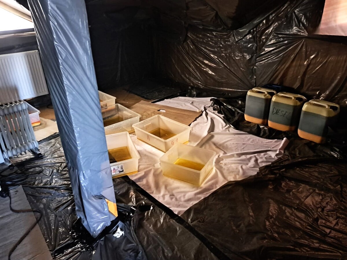 W toku dalszych czynności, w jednym z budynków policjanci ujawnili także laboratorium, w którym trwała produkcja psychotropowego klofedronu. Pod nadzorem prokuratora i przy udziale biegłego z zakresu badań chemicznych Laboratorium Kryminalistycznego Komendy Wojewódzkiej Policji w Krakowie oraz funkcjonariuszy Wydziału dw. z Przestępczością Narkotykową KWP w Krakowie przeprowadzono oględziny, w trakcie których zabezpieczono łącznie ponad 13 800 porcji gotowego do sprzedaży klofedronu wartego ponad milion złotych, a także 542 kilogramy tej substancji w postaci płynnej oraz w trakcie procesu krystalizacji. Łączna „czarnorynkowa” wartość zabezpieczonych substancji została oszacowana na 22,5 miliona złotych.